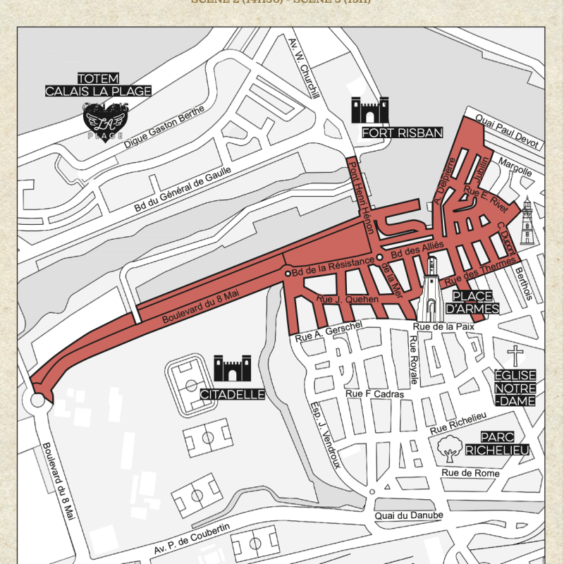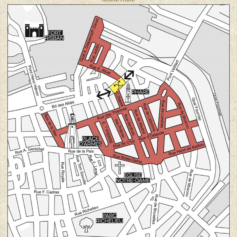 de 8h à 13h45 : rue de Moscou, rue Henri de Baillon, rue d’Ostende, quai Fournier, boulevard des Alliés, rue Berthois, rue du commandant Bonningues, quai de la Colonne, rue de Croy, rue Eustache de Saint-Pierre, rue de Lisbonne, rue de Londres, rue Notre Dame, rue des Prêtres, place de Rheims, rue de Riga, place de Suède.