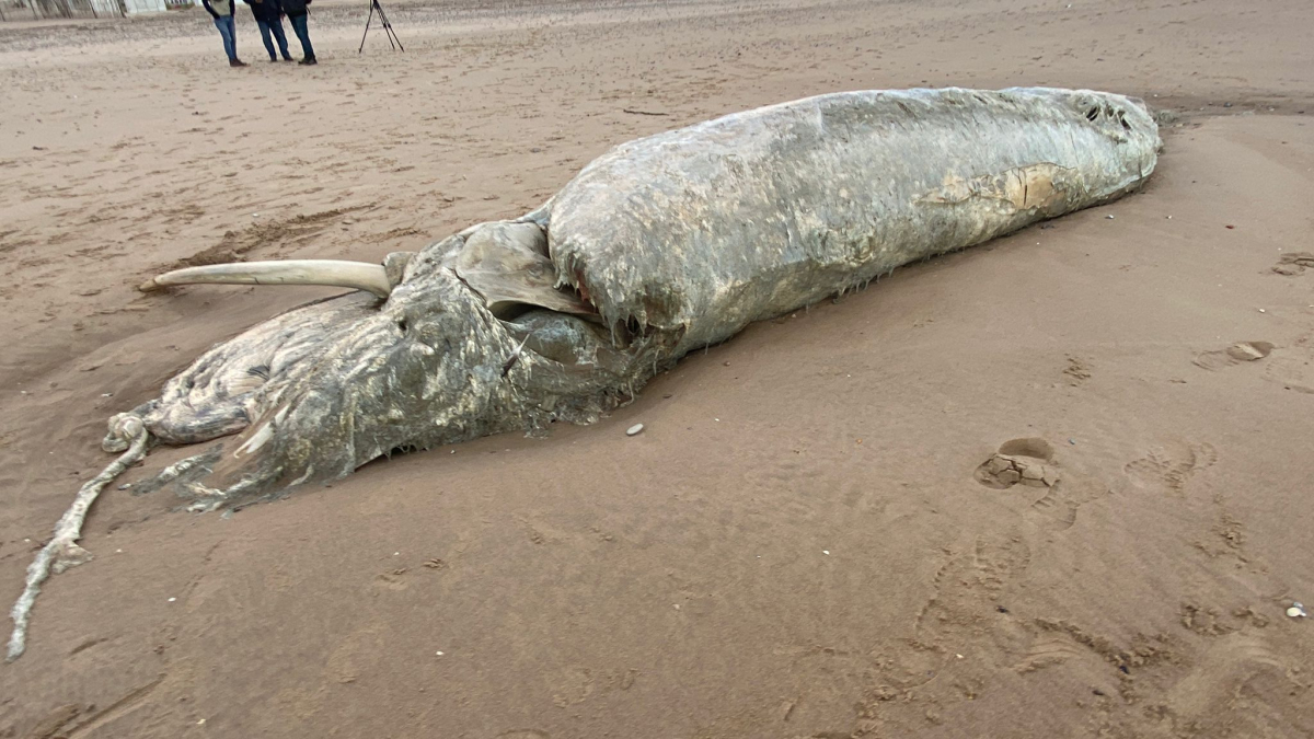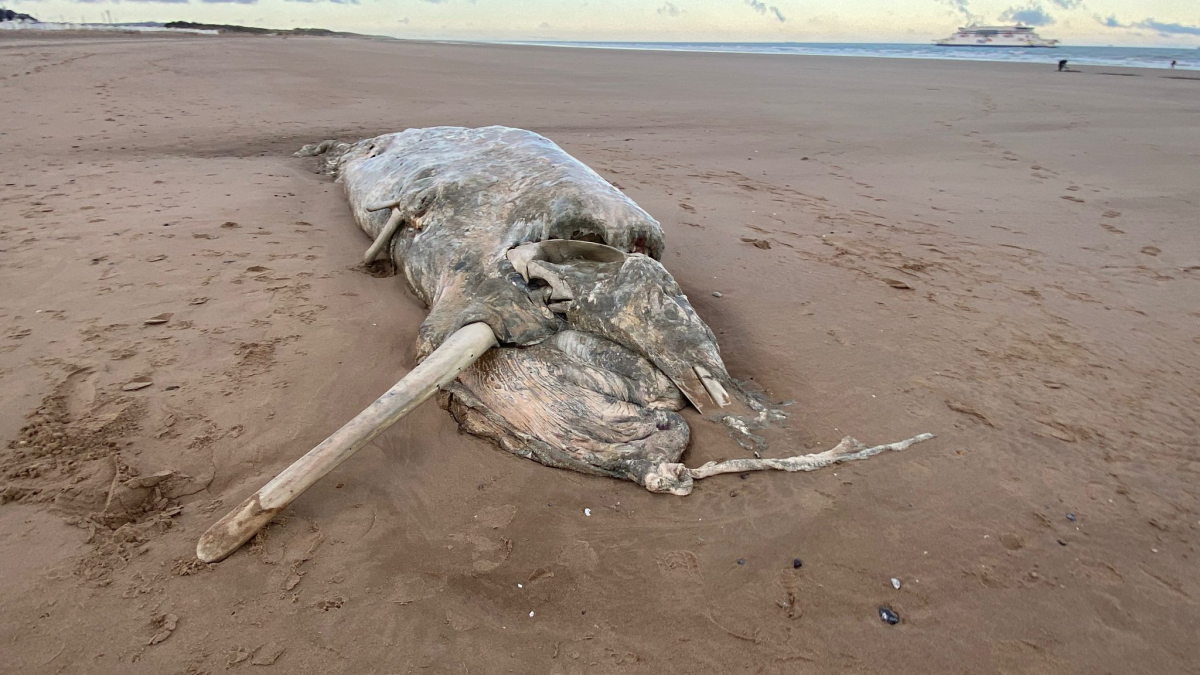 - VIDEO - La dépouille d'une baleine, de 10 mètres de long, a été découverte hier soir sur la plage de Calais.