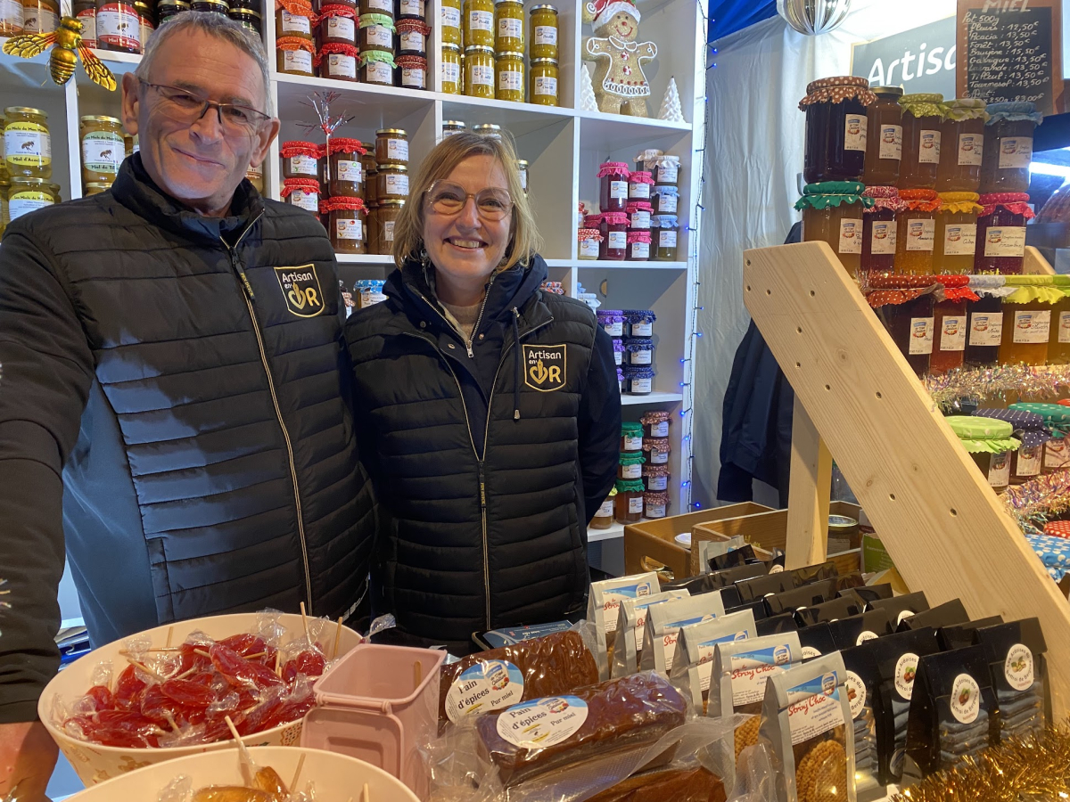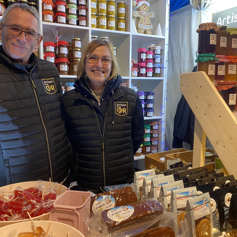 Entre les saucissons, les boules choco et les crêpes, on croise aussi Les Délices de Pépé Gustave et leurs produits artisanaux “en or”.