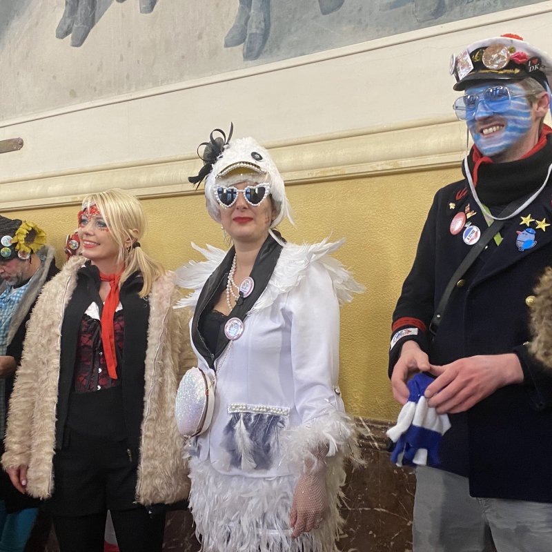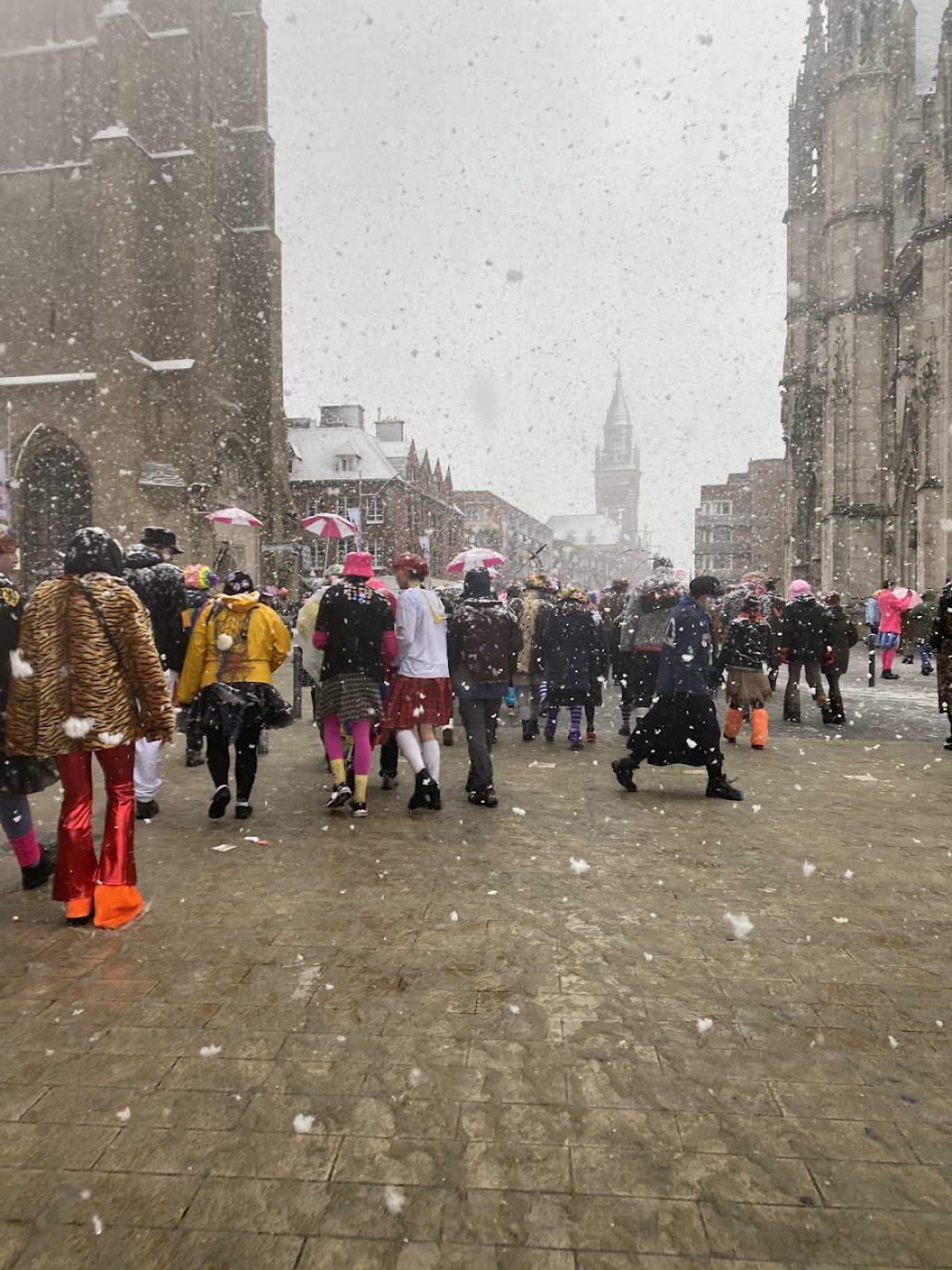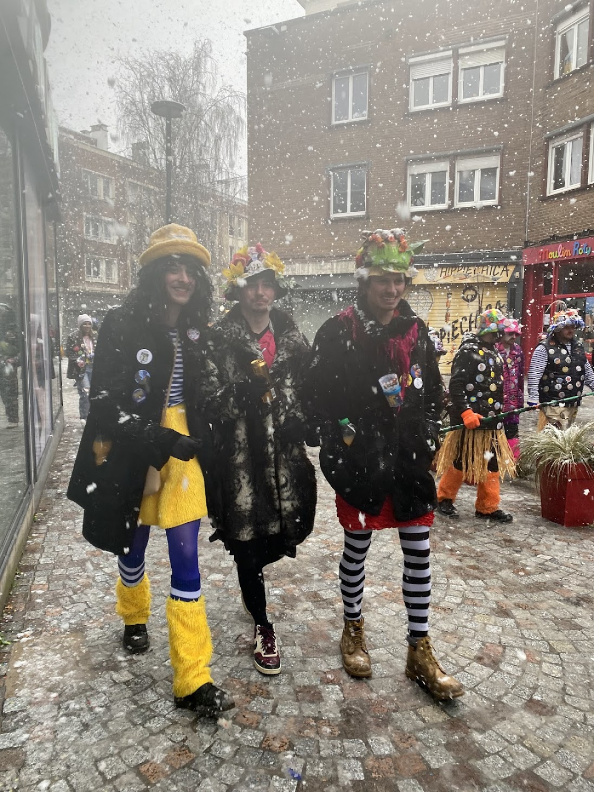 La journée de dimanche avait pourtant commencé dans la fraîcheur, mais sous le soleil. Quelques minutes après le départ de la Bande des Pêcheurs, les premiers flocons et la neige fondue sont venus doucher les carnavaleux tout l’après-midi.