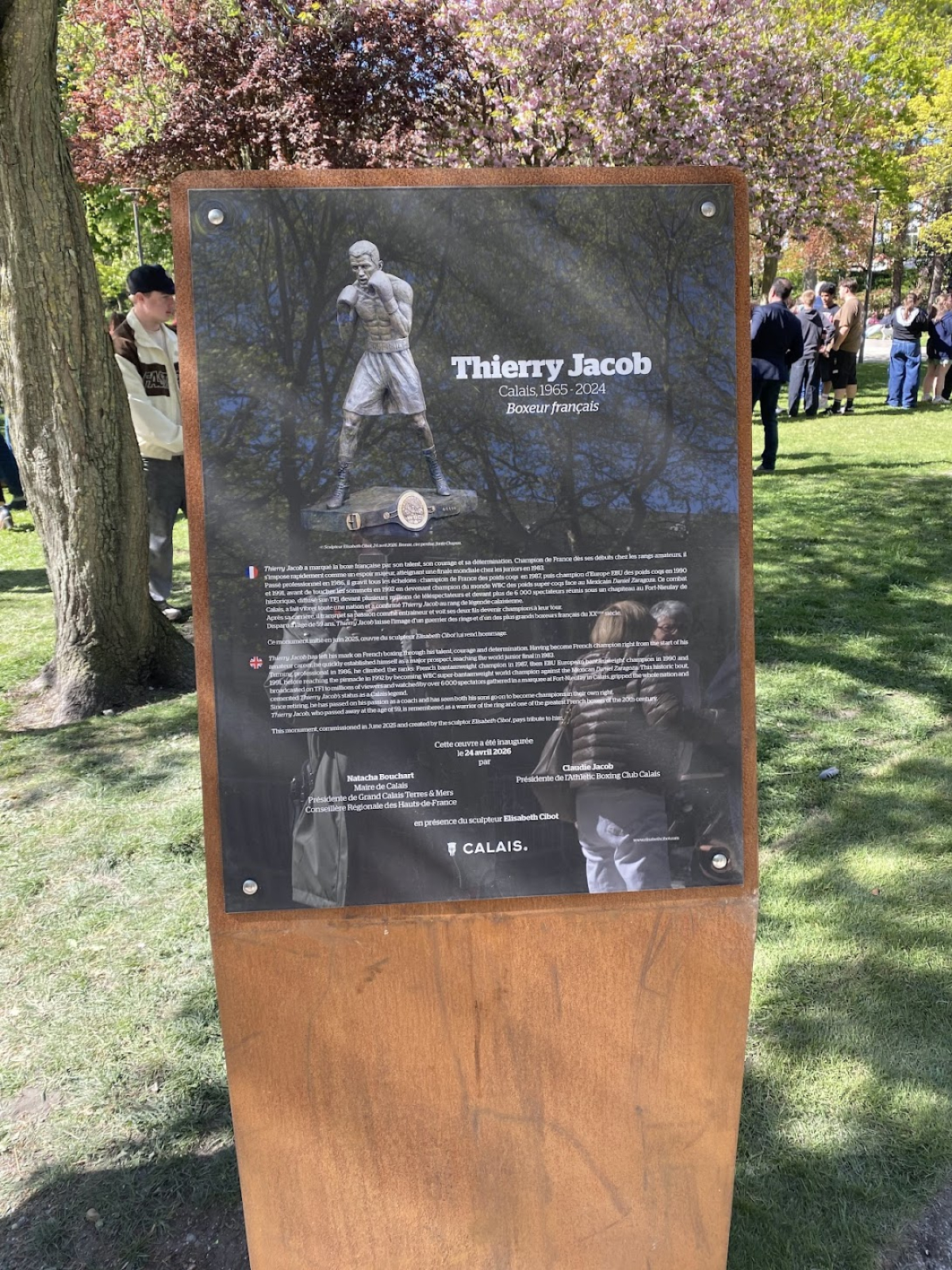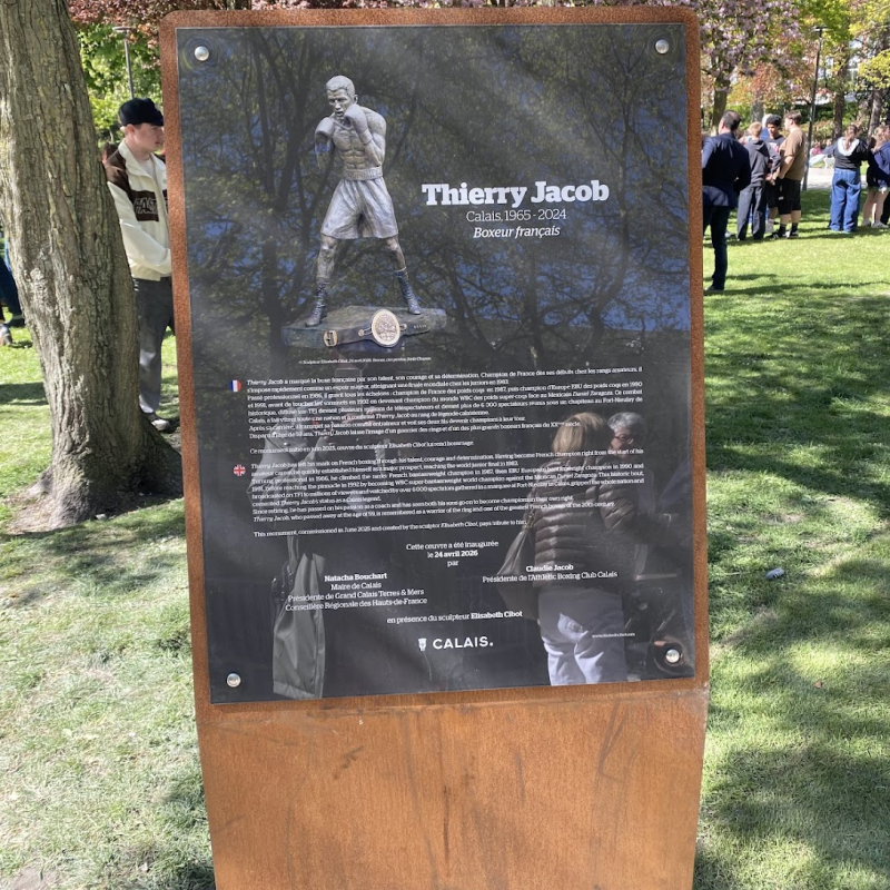 La ville de Calais a rendu un ultime hommage à Thierry Jacob, décédé en 2024. Une statue en bronze de l’enfant de la cité des Six-Bourgeois, champion du monde de boxe en 1992, trône à l’entrée fleurie du parc Saint-Pierre. Une statue plus grande que le sportif, mais qui illustre son immense carrière sur les rings…