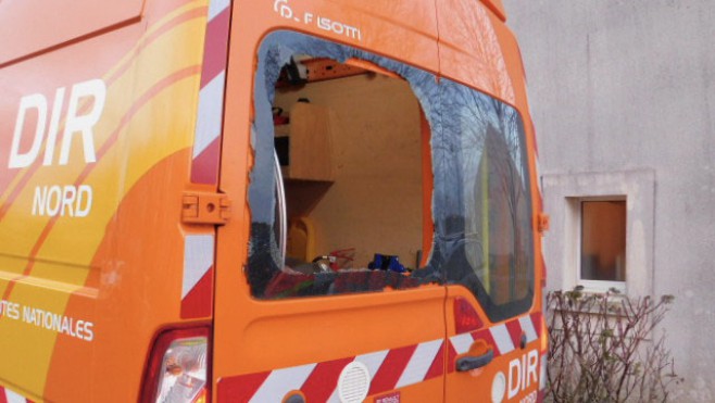 Le véhicule de la DIR cible d’un caillassage.
