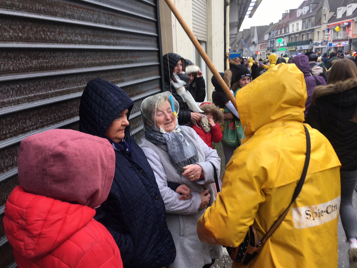 Des dizaines de pecqueux affublés de bottes, masques et cirés jaunes sont allés taquiner les enfants pour « faire pec pec », c’est-à-dire proposer aux plus petits d’attraper avec la bouche des bonbons accrochés au bout d’une canne à pêche.