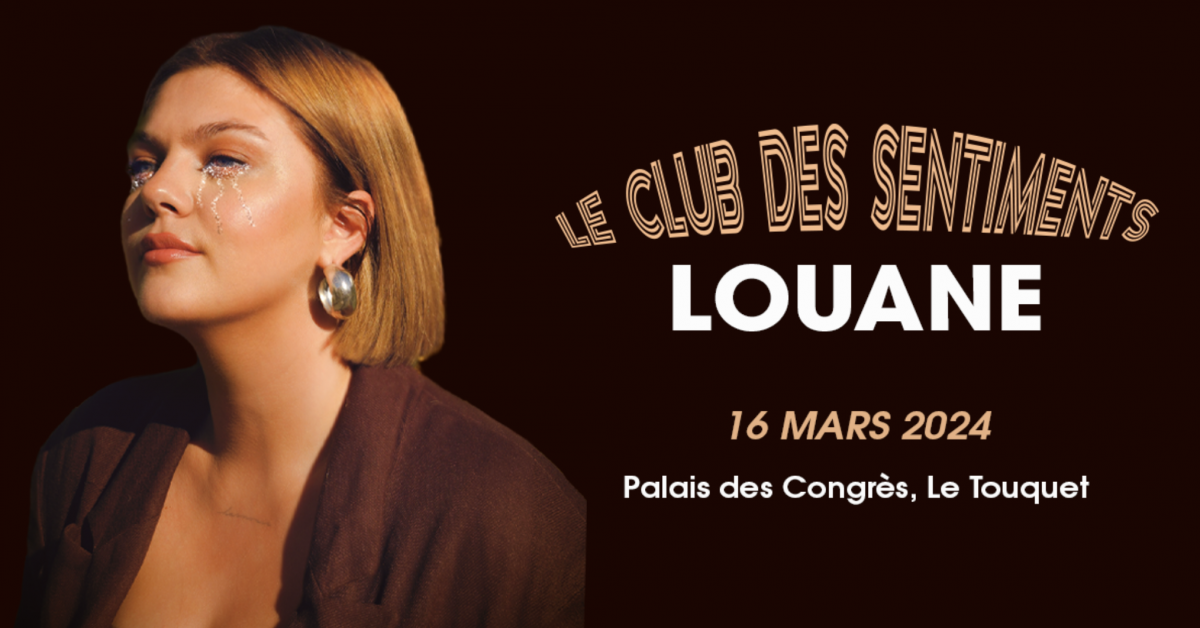 Sa tournée s'intitule « Le club des sentiments ». L’artiste interprètera les chansons de son quatrième et dernier album concept « Sentiments » dans lequel elle raconte des histoires personnelles et celles évoquées par sa communauté. Cet album qu’elle a écrit et composé est justement une ode aux « Sentiments ». Les places sont à 39€ et 49€. Billetterie sur : https://web.digitick.com/louane-concert-palais-des-congres-salle-maurice-ravel-le-touquet-paris-plage-16-mars-2024-css5-tumetonnesprod-pg101-ri9578745.html