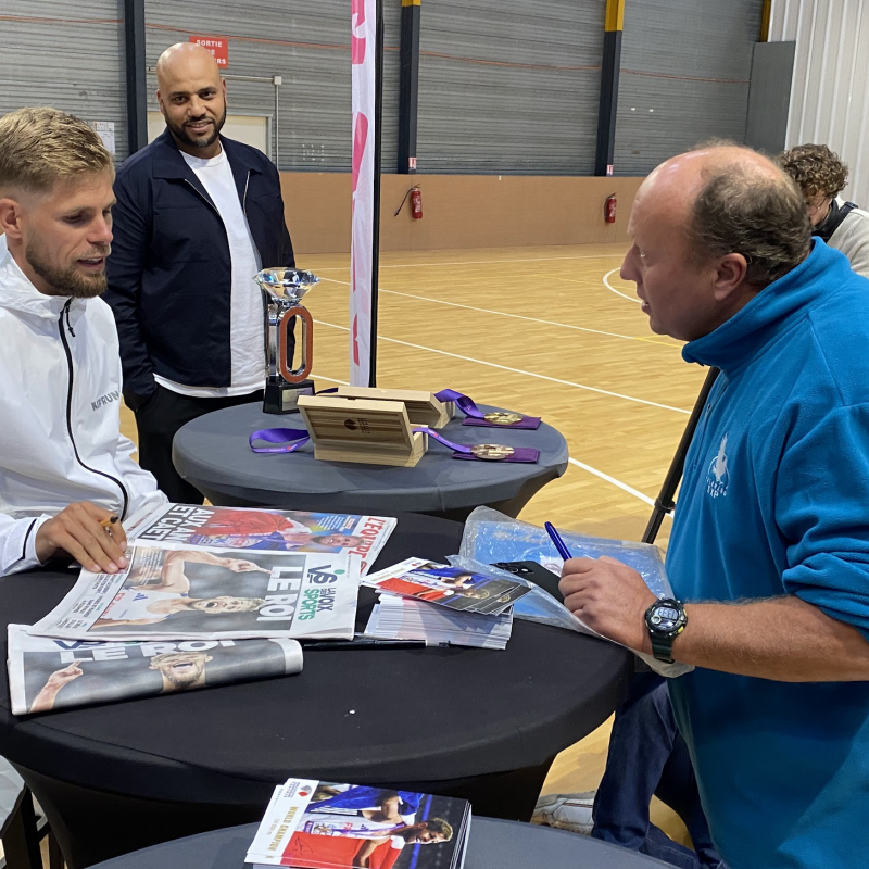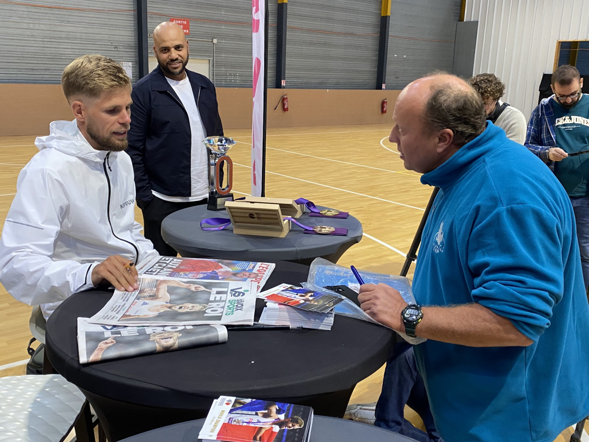 Jimmy Gressier est rentré chez lui samedi après-midi. Il avait organisé une séance de dédicaces chez son ami du pôle sportif Ever Go, à Saint-Martin-Boulogne. Le public averti était au rendez-vous pour faire signer des photos, des livres ou même une paire de baskets !