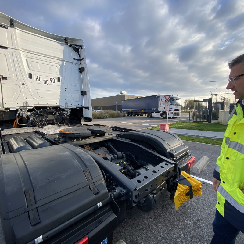 Un nouveau poids lourd vient d’intégrer la flotte de 80 véhicules : le Mercedes eActros 600, entièrement électrique.