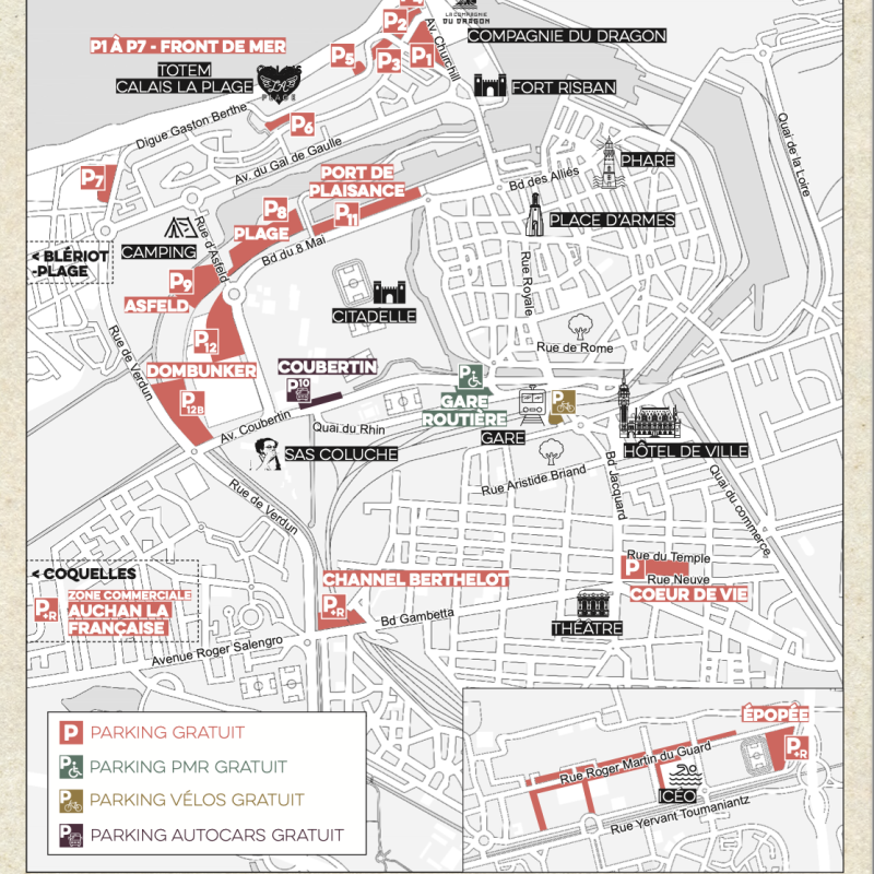 Des parkings gratuits sont à votre disposition dans plusieurs secteurs de la ville :