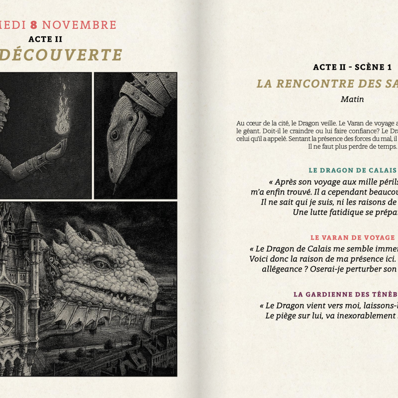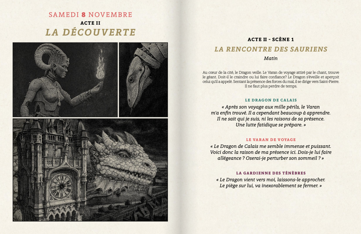 Mais une menace plane sur le jeune varan, qui doit tout apprendre du Dragon de Calais. Hier soir, Lilith, la Gardienne des Ténèbres, a fait son entrée près du Palais de Justice. Elle pourrait bien défier le Dragon de Calais aux alentours du Grand Théâtre d’ici la fin de matinée ou le début d’après-midi.