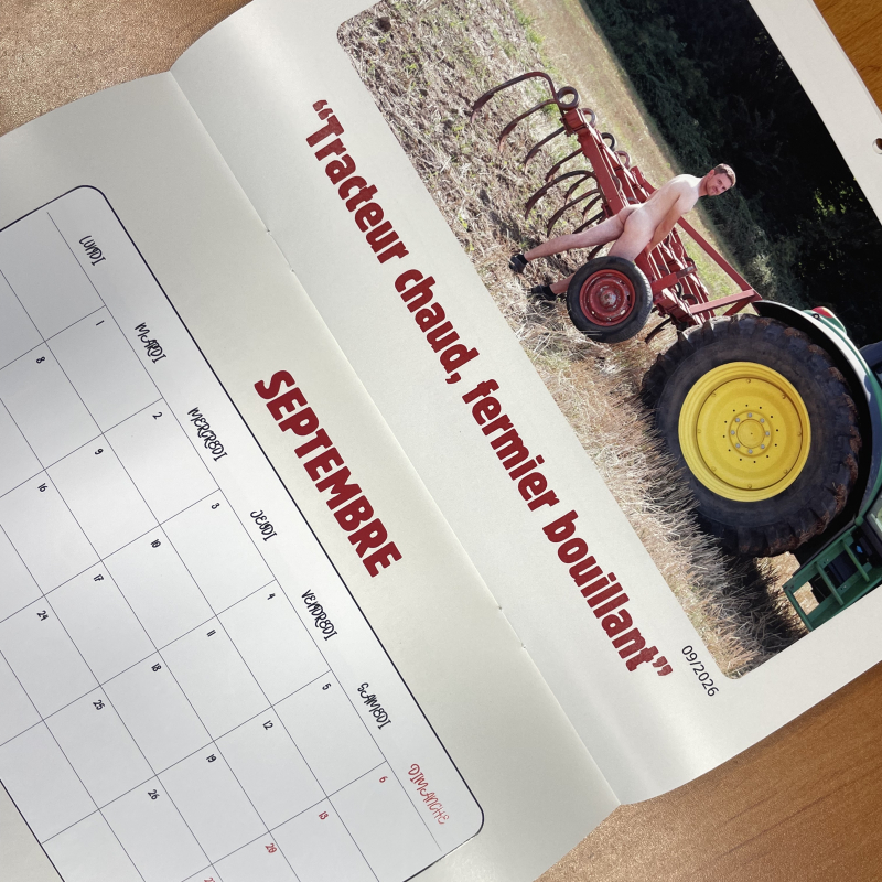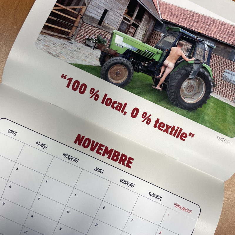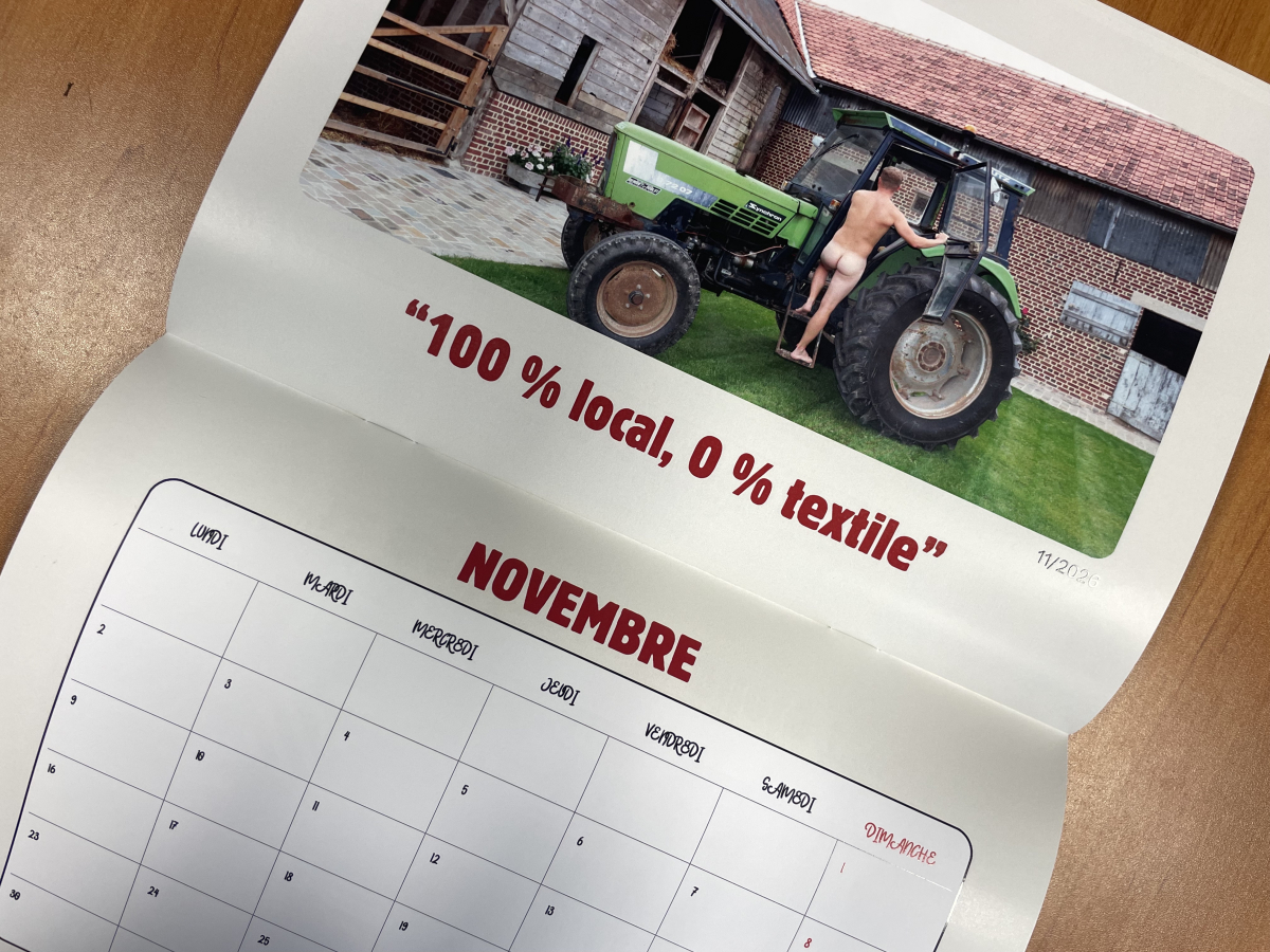 Le collectif des Jeunes Agriculteurs de la Somme vient de lancer son calendrier 2026, format A4, avec pour chaque mois un agriculteur "bien outillé", entouré de tracteurs, bottes de paille ou fourches. Une mise en scène humoristique, jamais vulgaire, mais sans cotte de travail !