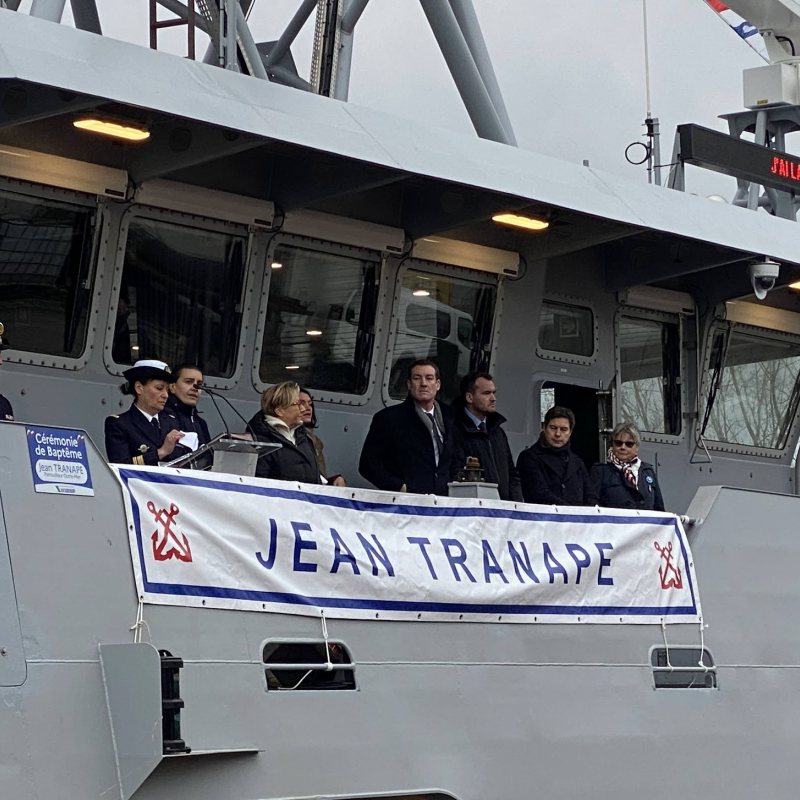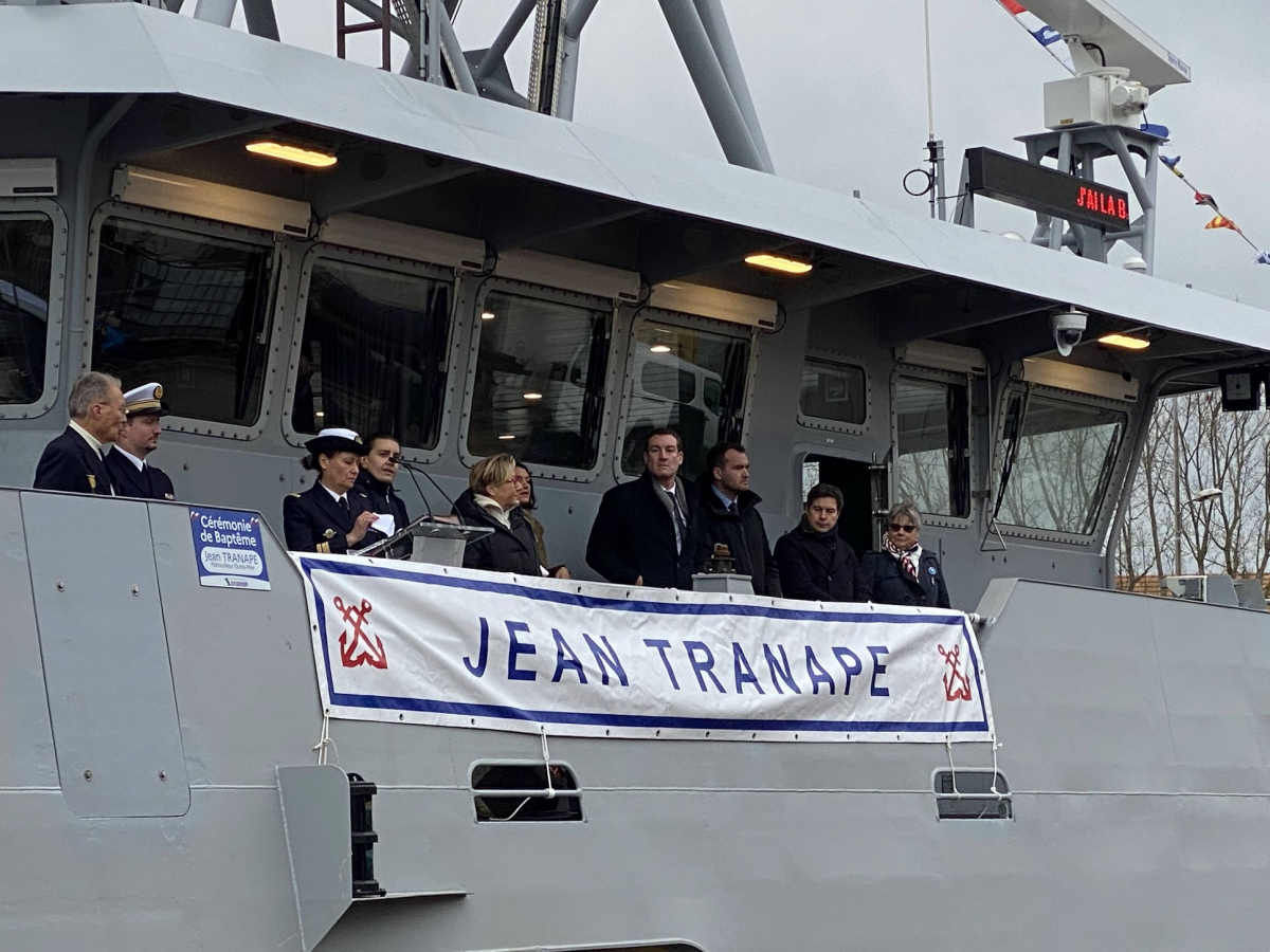 Long de 80 mètres et large de 12 mètres, le bâtiment est destiné aux missions de surveillance au large de Nouméa, en Nouvelle-Calédonie. L’équipage disposera d’un canon, d’un zodiac et d’un drone. Le Jean Tranape est le quatrième des six navires commandés. Yvon Tranape, son fils, et Lucas, son arrière-petit-fils engagé dans l’armée de Terre, étaient présents.