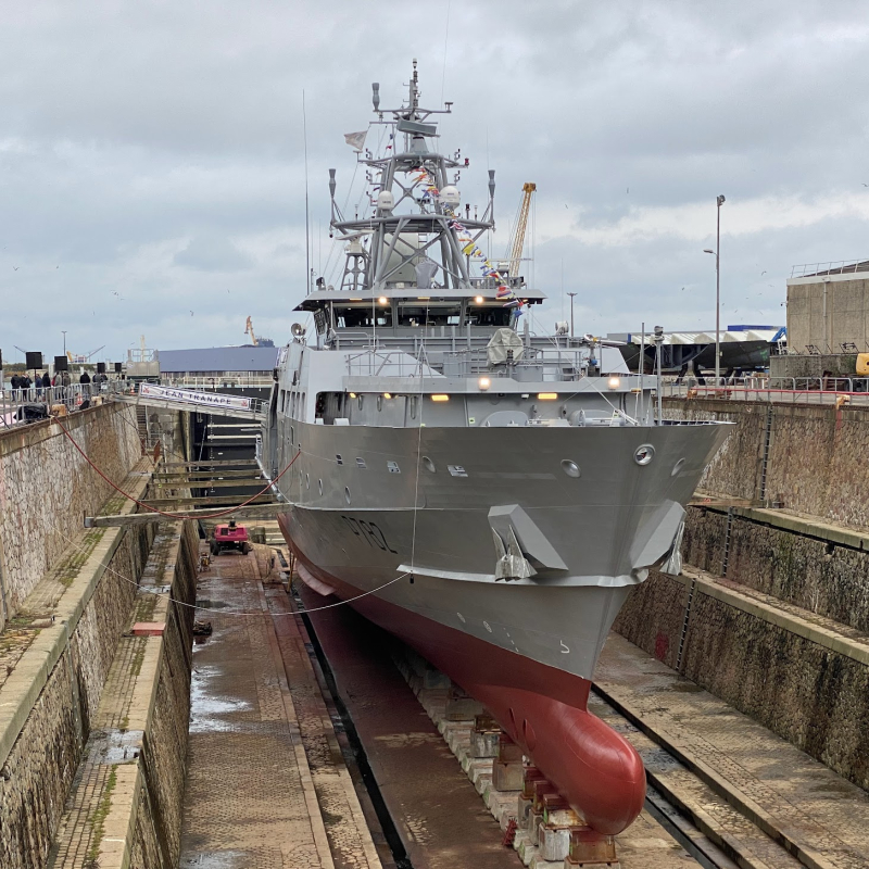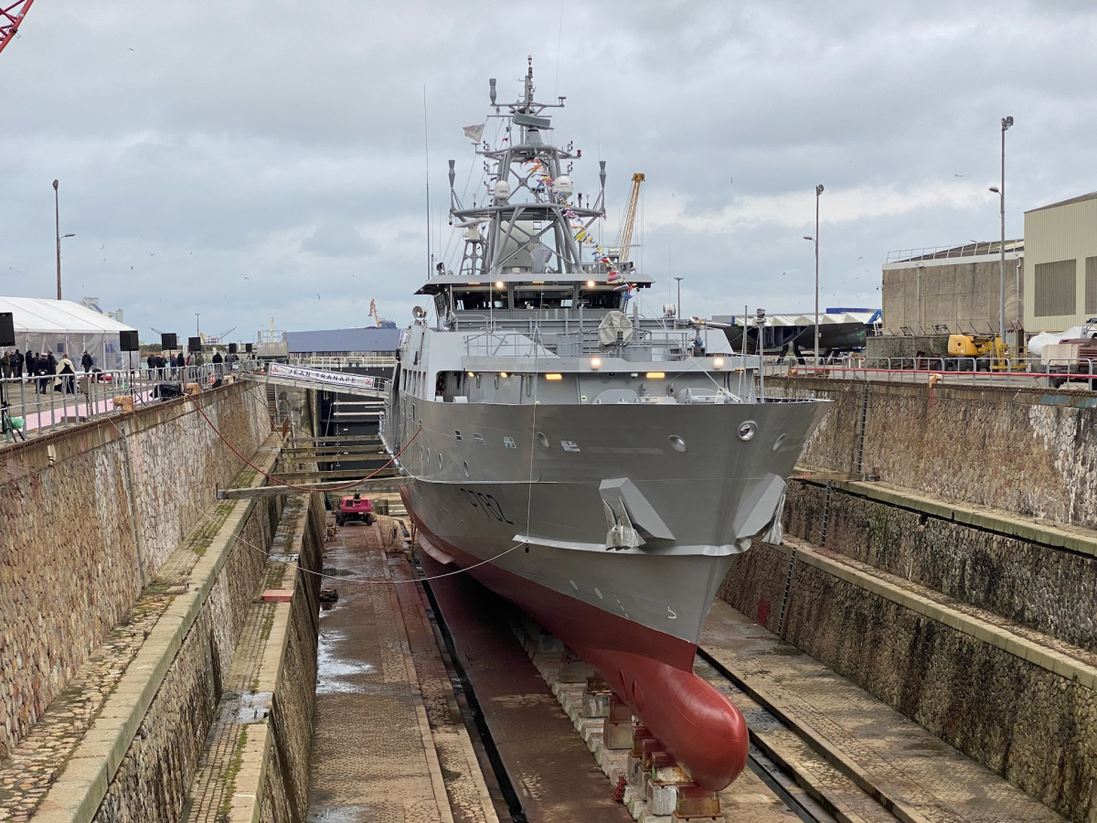 À Calais, la Marine nationale a baptisé le patrouilleur outre-mer Jean Tranape dans les chantiers navals de la Socarenam.