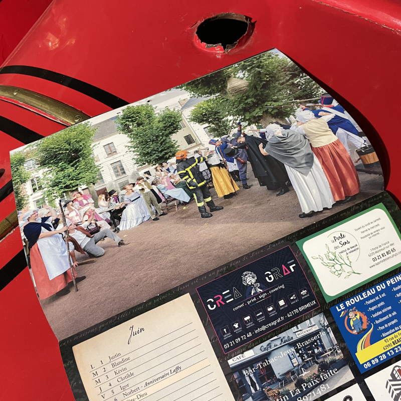 "C’est un véhicule de l’époque des Misérables, ou presque. On voulait vraiment le mettre à l’honneur", précise l’équipe. Les Pompiers aiment impliquer des partenaires locaux dans la fabrication du calendrier, ainsi le club photo de Brimeux à réaliser les clichets de cette édition 2026.