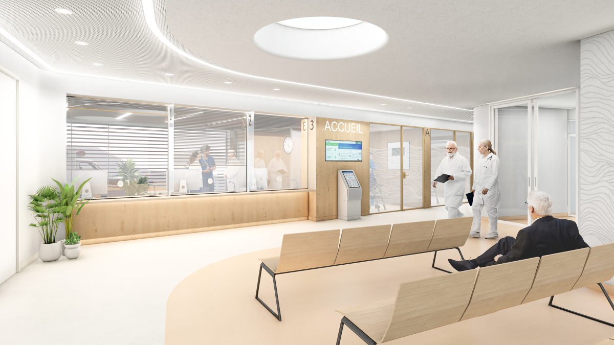 Finie la configuration actuelle, en 3 couloirs: place désormais à un espace d'accueil plus aéré et plus sécurisé pour le personnel.