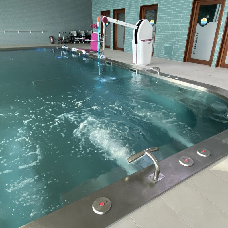 Privé de bassin depuis 2019, l’hôpital maritime retrouve un équipement ultra-moderne. Deux grands bassins en inox peuvent accueillir des patients valides, en fauteuil et même alités, dans une eau douce à 28 degrés. Il s’agirait du seul équipement de ce genre au nord de Paris.