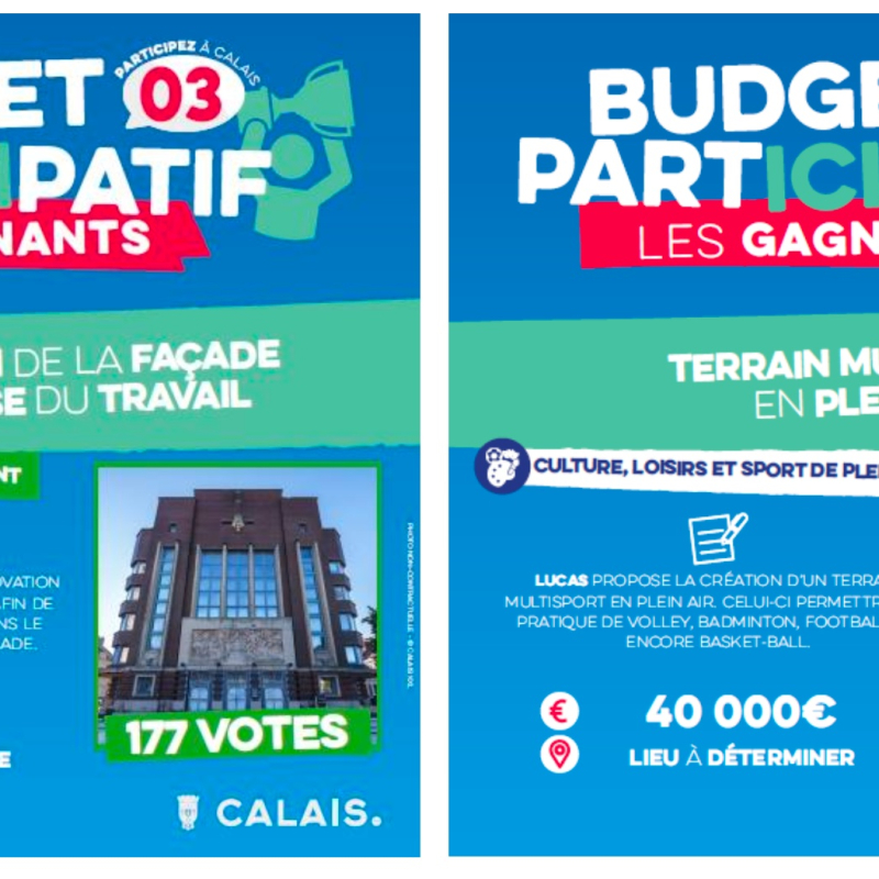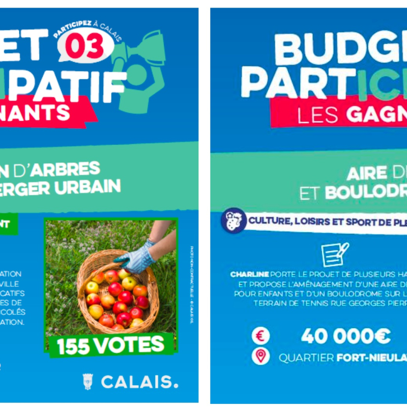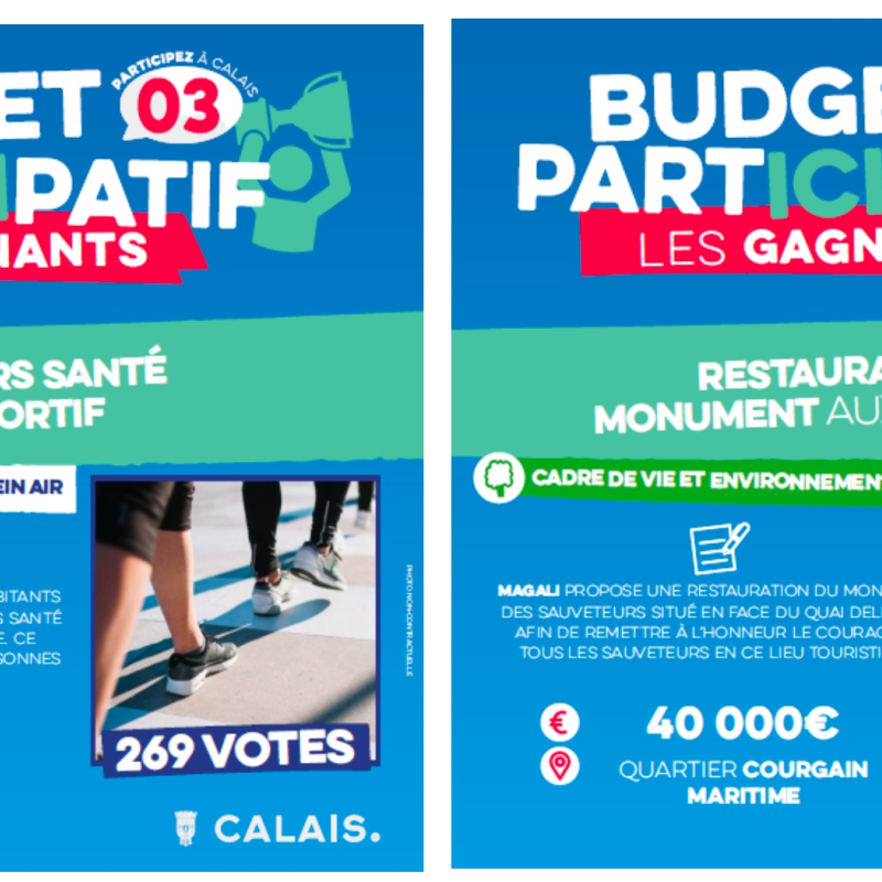 6 projets citoyens seront réalisés en 2026 dans le cadre du Budget participatif doté d'une enveloppe de 200 000 euros. 31 projets ont été soumis au vote des calaisiens. 2 429 votes ont été comptabilisés, en ligne et sur bulletin papier