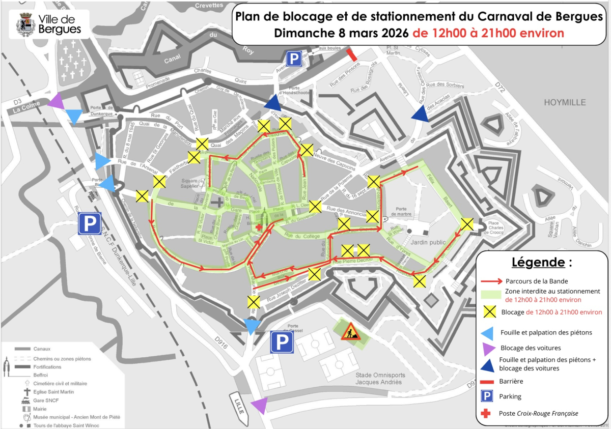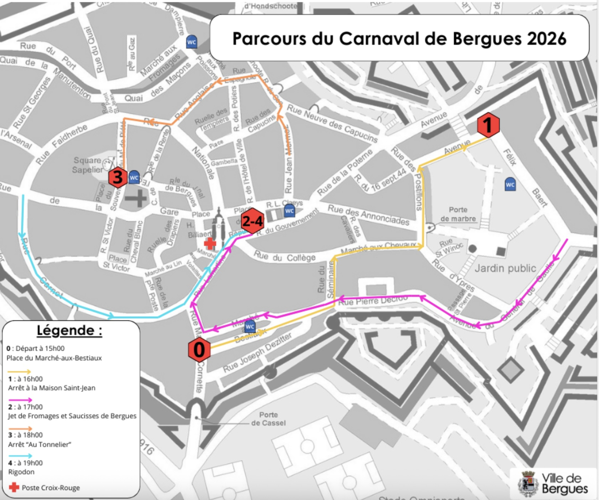À 10h30, l’avant-bande s'élancera de la place de la République. Chapelle à 11 heures rue Maurice-Cornette organisée par le Racing-Club de Bergues.