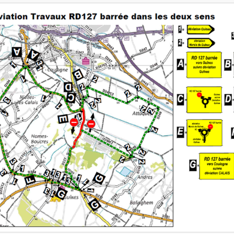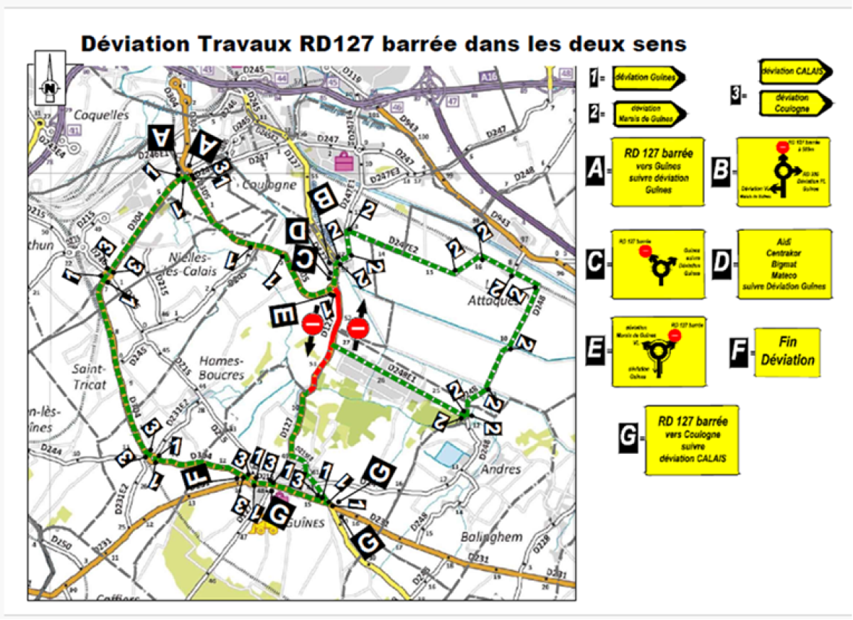 Et à partir de la semaine prochaine, la circulation restera limitée dans un seul sens entre Guînes et Coulogne. Des déviations seront maintenues pour les automobilistes dans le sens inverse.