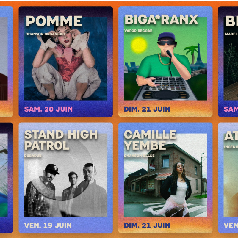 «En tête d’affiche, le vendredi 19 juin avec Stand High Patrol, Ata Kak, Jonny & Wallace et le Dunkerquois Gemroz. Samedi 20 juin c’est Pomme qui lancera les festivités avec une nouvelle scénographie, Bekar, ou encore le très surprenant Perceval et sa techno médiévale.